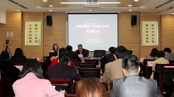 11月16日下午,合肥市高新區(qū)“IPO綜合咨詢”交流推介會在管委會206會議室舉行。合肥市高新區(qū)管委會上市辦主任潘順生主持會議并講話;上海念桐投資管理有限公司朱艷總裁出席會議并作專題輔導(dǎo)報告;來自園區(qū)的三十家高新技術(shù)企業(yè)負責(zé)人、財務(wù)總監(jiān)以及董事會秘書等參加會議。