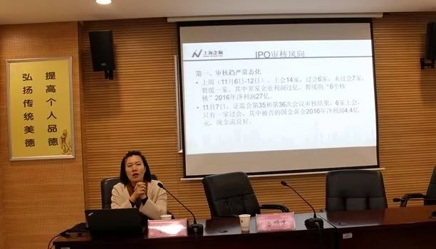 朱艷總裁應(yīng)邀為參會企業(yè)作了《IPO審核風(fēng)向》的專題輔導(dǎo)報告。朱總從新近IPO上會審核情況引入,解讀了發(fā)審委最新審核思路、IPO過程中的相關(guān)法律、財務(wù)政策和注意事項。整場報告,簡潔高效、層次分明、時效性強,做到了專業(yè)性與實用性相結(jié)合、理論知識與案例分享相結(jié)合、主題授課與互動交流相結(jié)合,有效幫助企業(yè)了解資本市場最新動態(tài),為企業(yè)IPO之道提供了精準輔導(dǎo)。