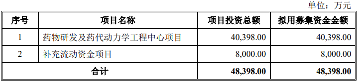 募資用途:此次IPO擬募資4.84億元,用于藥物研發(fā)及藥代動(dòng)力學(xué)工程中心項(xiàng)目、補(bǔ)充流動(dòng)資金項(xiàng)目。