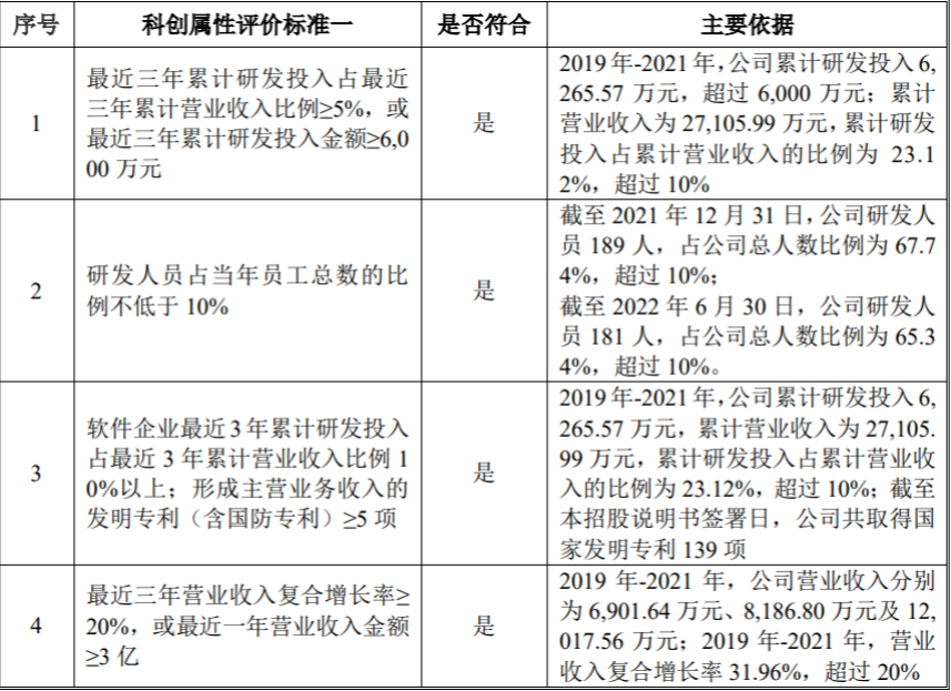 公司符合科創(chuàng)屬性評(píng)價(jià)標(biāo)準(zhǔn)的相關(guān)指標(biāo):